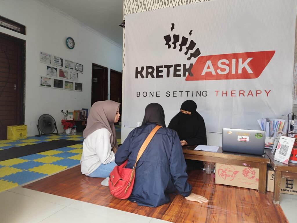 “Rasakan kenyamanan maksimal dengan Terapi Kretek di Kretek Asik! Pijat Reposisi tulang sendi terpercaya, profesional, bersertifikat, dan ramah. Biaya terjangkau untuk kesehatan Anda!”